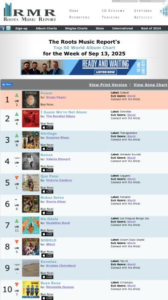 Grupo Pagán’s latest album “POWER” hit number 1 on the RMR TOP 30 World Chart with our new release ‘POWER’ and have been nominated for a SAMMY(Syracuse Area Music Award).